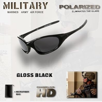These are the all new 2011/12 edition Chamelius X3 Military Gloss Black ONYX. We have listened to our customers feedback and created better lenses and a more durable frame. Includes the Chamelius brand stealth "Embossed" logo. This package includes Microfiber bag and sunglasses. We have upgraded the Black ONYX lens and increased the earsocks durability. The lens is a new CAT 2.6 darkness with an ONYX coating designed to help conceal the wearer's eyes and reduce IR (Infra-Red) rays. Chamelius Sunglasses are actively in use by the Armed Forces in over 15 countries around the world. The frame is a standard U.S. medium size frame and is suitable for both men and women. Please check the measurements image to make sure that it will fit comfortably. This frame will generally accommodate 8 out of 10 facial geometries. DISCLAIMER Chamelius Sunglasses are not ballistic rated and are not a substitute for government military issued protective eyewear. They are not recommended as a replacement or alternative to protective eyewear in combat. Our sunglasses meet the army standard AR 670.1 for dress wear. They are Black frames with non-mirrored lenses and stealth logos as required by military dress code.